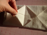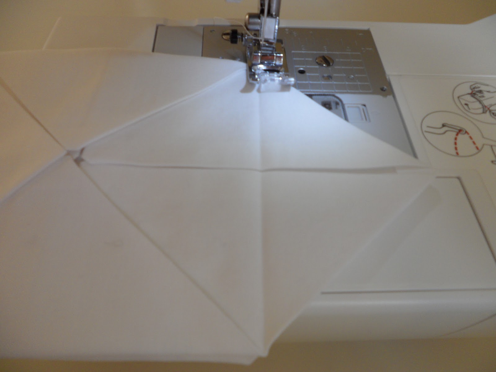 Take this to your sewing machine and stitch the two triangles together on the fold line